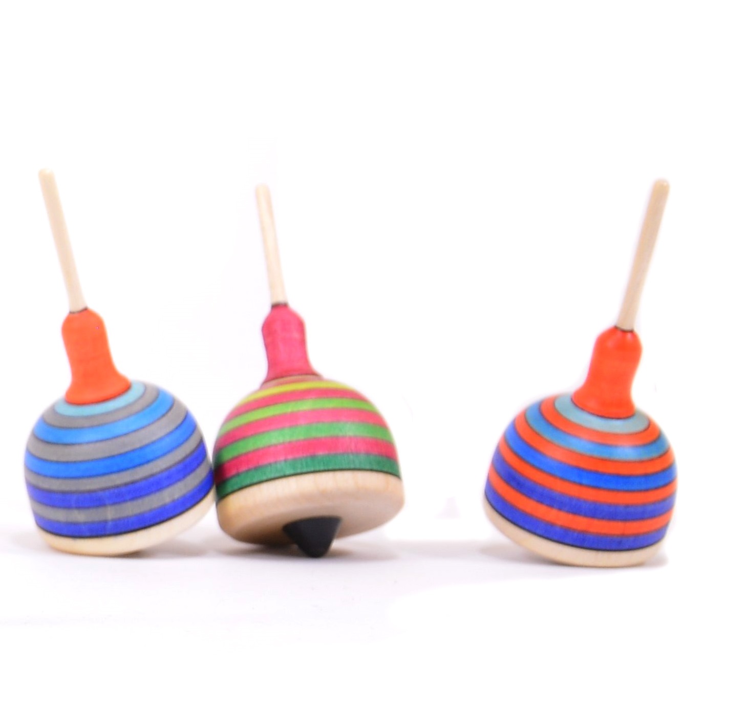 Bemalungen werden von Hand aufgetragen. Somit ist jeder Kreisel ein