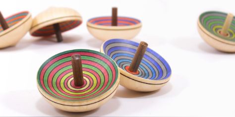 Bemalungen werden von Hand aufgetragen. Somit ist jeder Kreisel ein