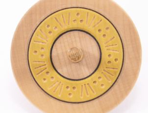 Dieser Fingerkreisel mit dem bananengelben Ring auf der Oberfläche ist Teil der Jahreskreiselreihe 2024 der Mader Kreiselmanufaktur.