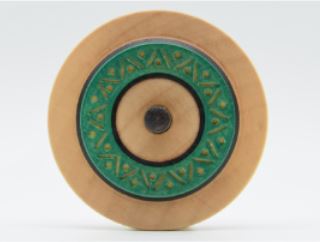 Dieser Fingerkreisel mit dem moosgrünen Ring auf der Oberfläche ist Teil der Jahreskreiselreihe 2025 der Mader Kreiselmanufaktur und heißt Python.