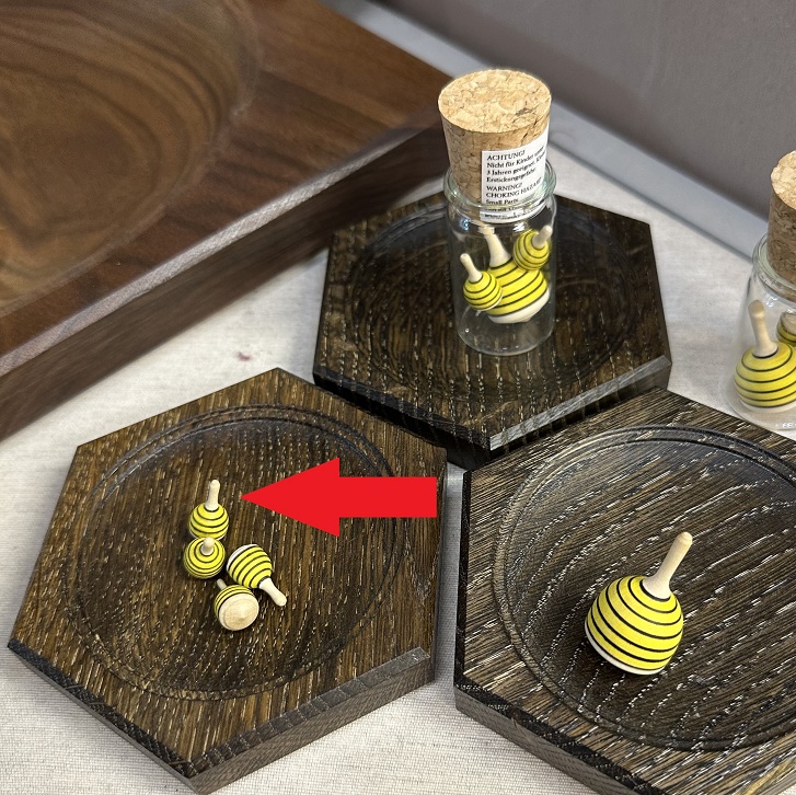 Das kleine Bienchen ist ein Holzkreisel in Miniaturausgabe. Er wird in einem hübschen Glas geliefert und lässt sich wirklich super kreiseln!