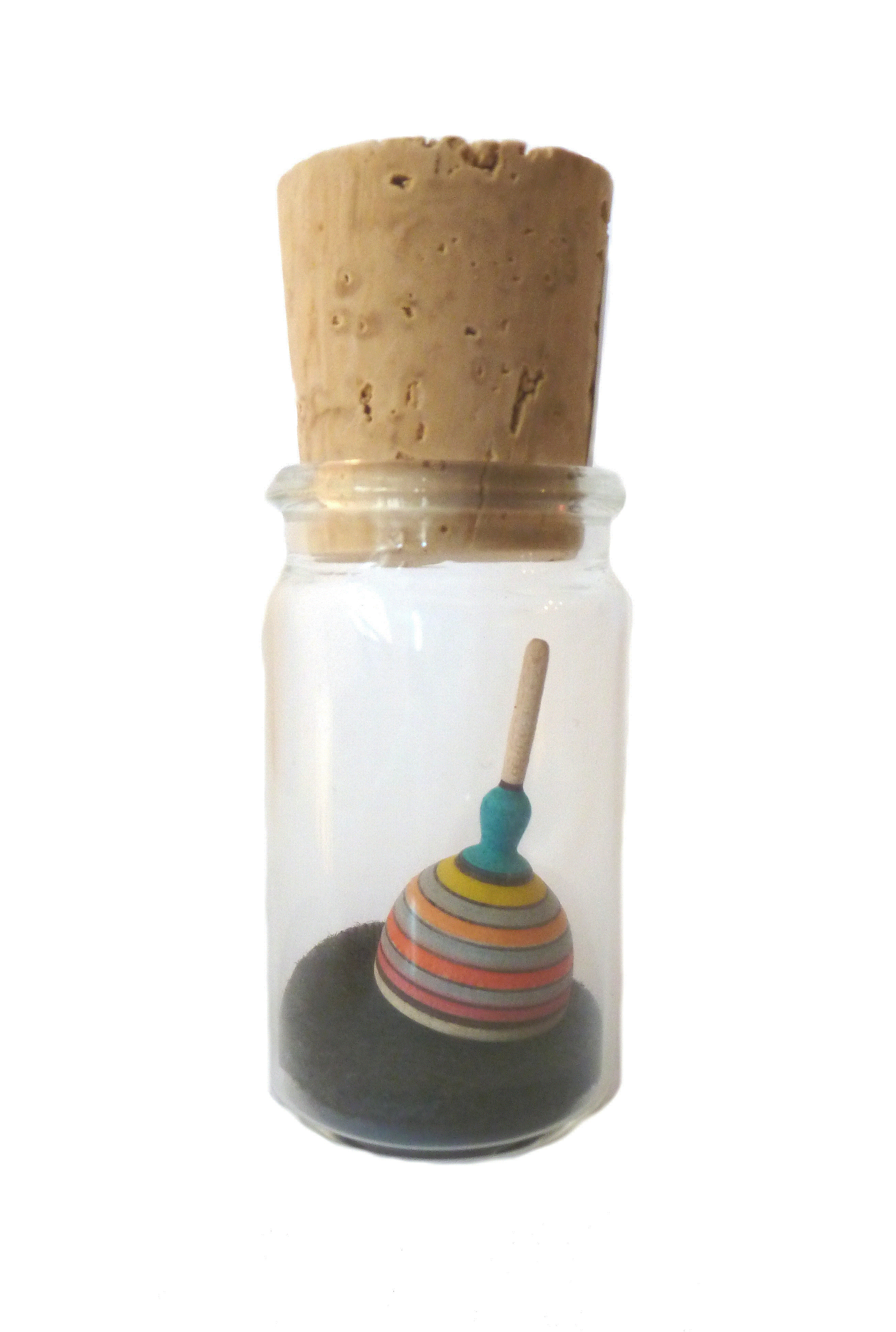 Fridolinchen ist ein kuppelförmiger Fingerkreisel mit einer Metallspitze in Miniaturform.