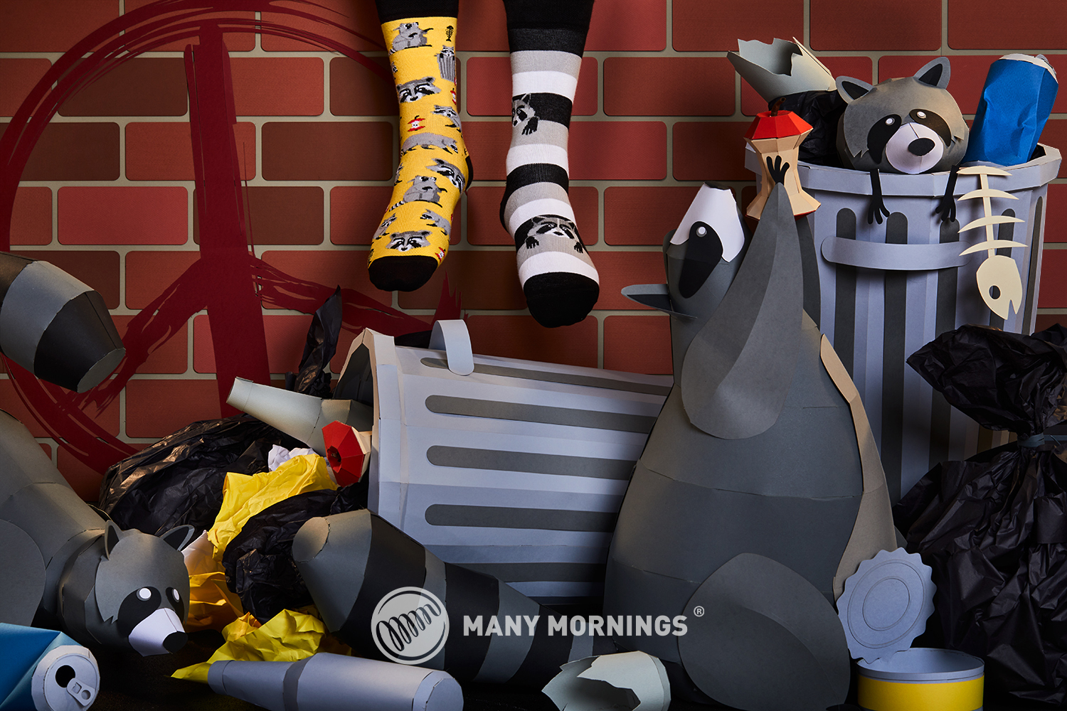 Die Many Mornings Waschbär Socken Raccoon Bandit Gr. 35-38 sind ein echter Blickfänger und bezaubern alle Fans witziger Motivsocken. Das Besondere dabei: Das Paar besteht aus zwei verschiedenen Socken mit unterschiedlichen Waschbär-Motiven. So bringt schon das morgendliche Socken-Anziehen wunderbar viel Spaß und auch den Tag über kommt immer wieder Freude hoch.
