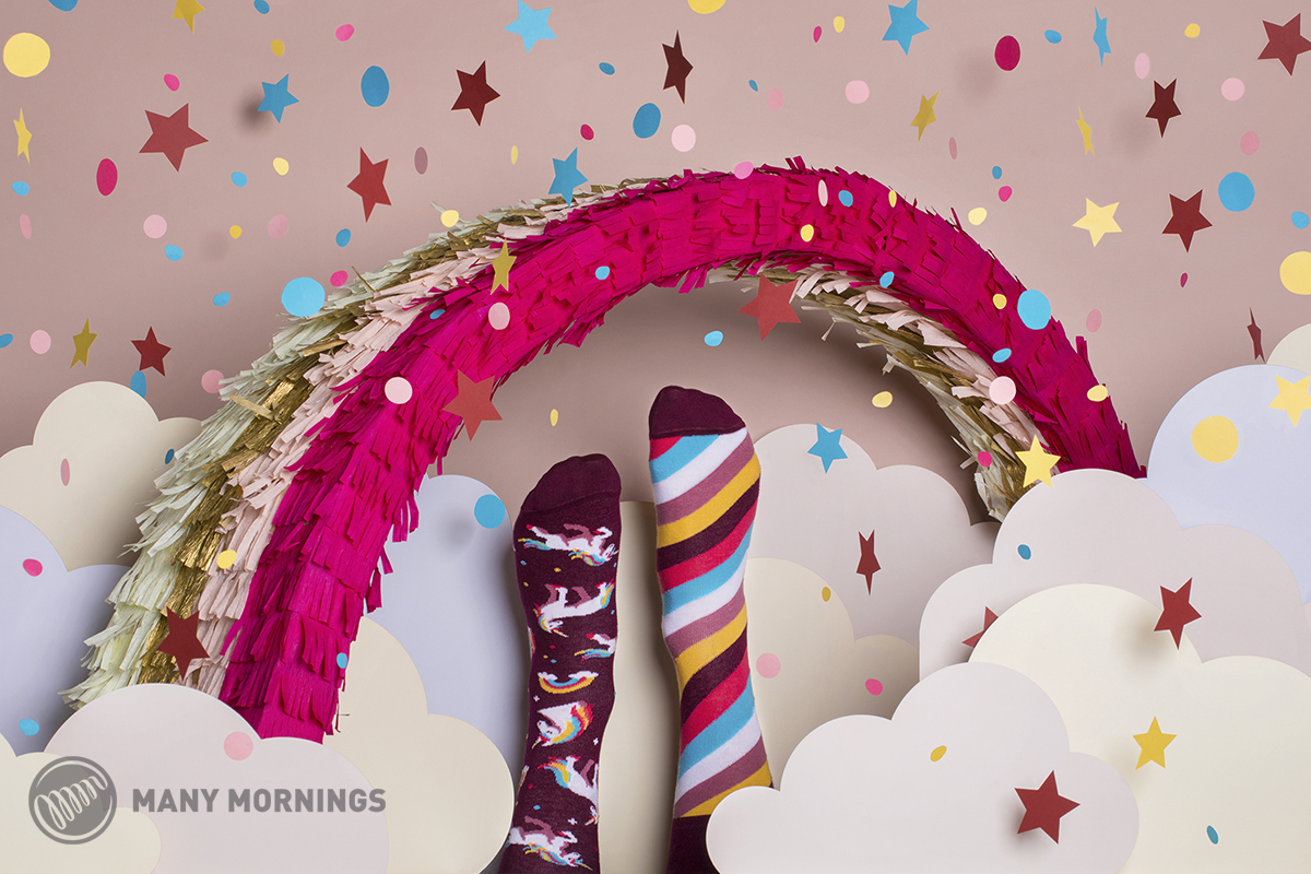 Die Many Mornings Socken Unicorn Kids Gr. 23-26 sind ein echter Blickfänger und bezaubern alle Fans witziger Motivsocken. Das Besondere dabei: Das Paar besteht aus zwei verschiedenen Socken mit unterschiedlichen Motiven. So bringt schon das morgendliche Socken-Anziehen wunderbar viel Spaß und auch den Tag über kommt immer wieder Freude hoch.