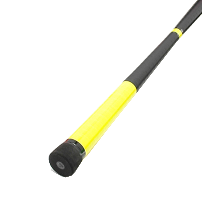 Der kern des Devilstick Fluo ist ein Holzstab, der zur Mitte hin konisch zuläuft. Dekoriert ist der Fluo mit einem schwarzen Tape und zusätzlich im oberen Stabbereich mit einer fluoreszierenden Folie. Besonders gut für Schwarzlicht geeignet. Die schwarzen Moosgummi-Knobs an den beiden Enden verhindern einen harten Aufprall auf den Boden, so dass der Devilstick nicht so schnell bricht.