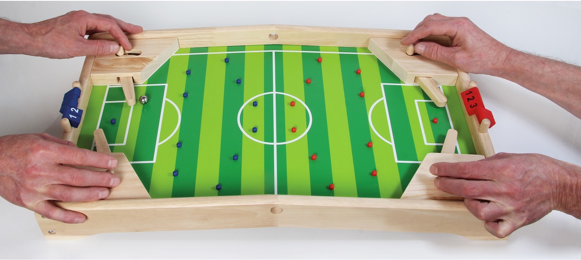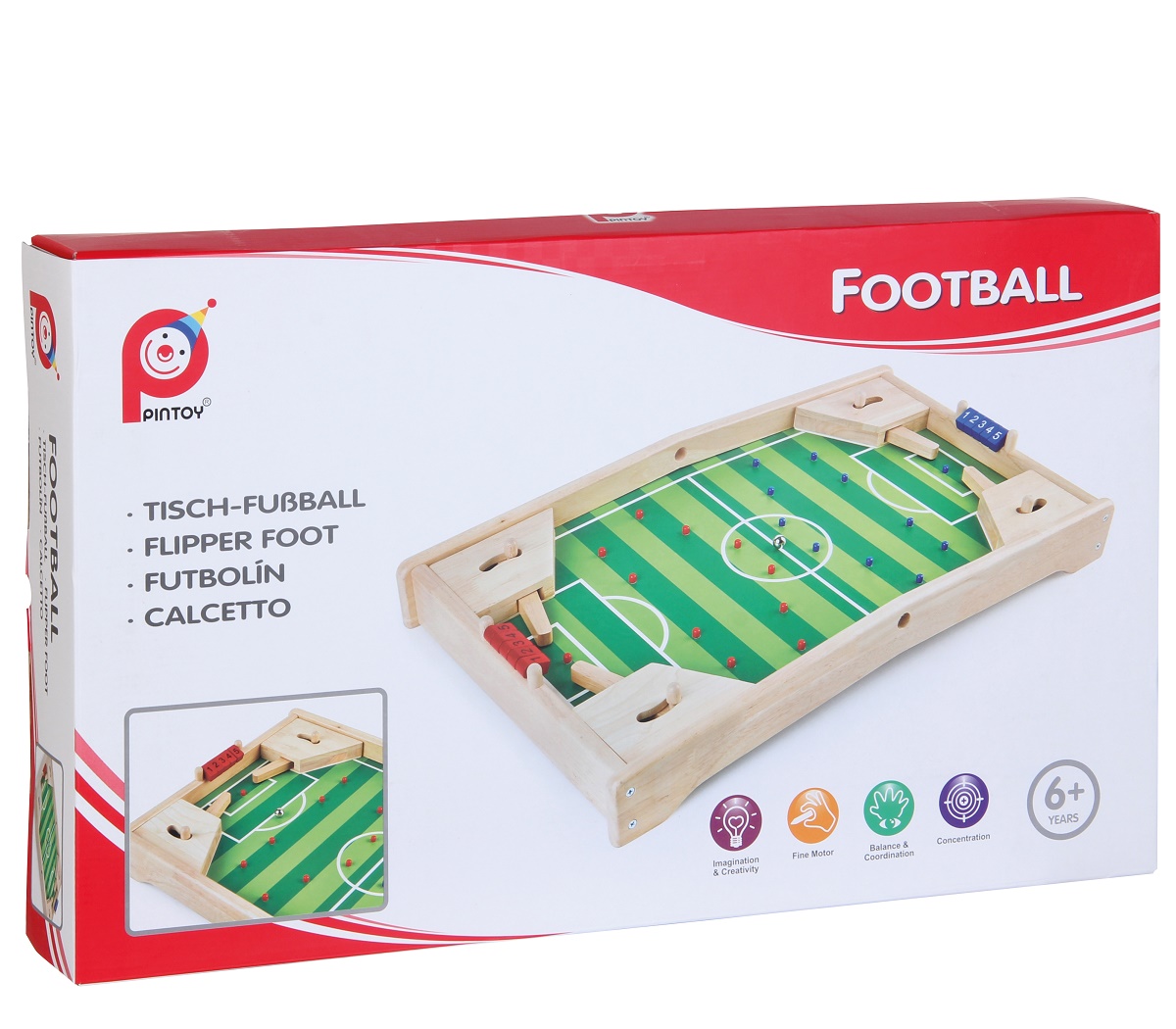 Stabiler Fußball-Flipper von Pintoy aus Holz für zwei Personen. Großer Spielspass!