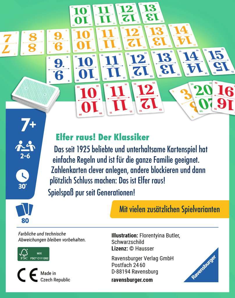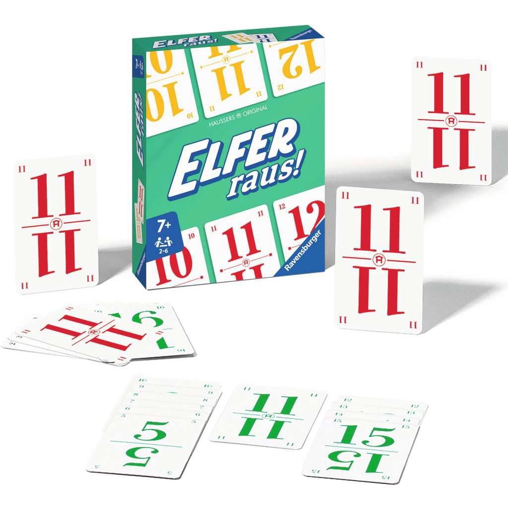 Das seit 1925 beliebte & unterhaltsame Kartenspiel Elfer raus von Ravensburger mit einfachen Regeln für die ganze Familie. Zahlenkarten anlegen, die anderen Mitspielenden blockieren & dann plötzlich Schluss machen: das ist Elfer raus!