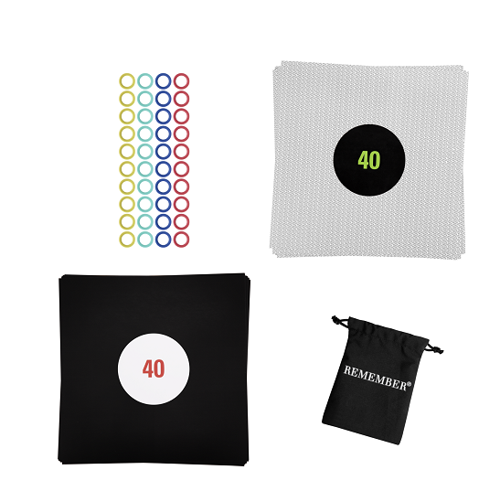 • 2 x 40 Spielblätter, 2 x 40 Spielringe im Baumwollbeutel, Lösungsbuch mit Spielanleitung