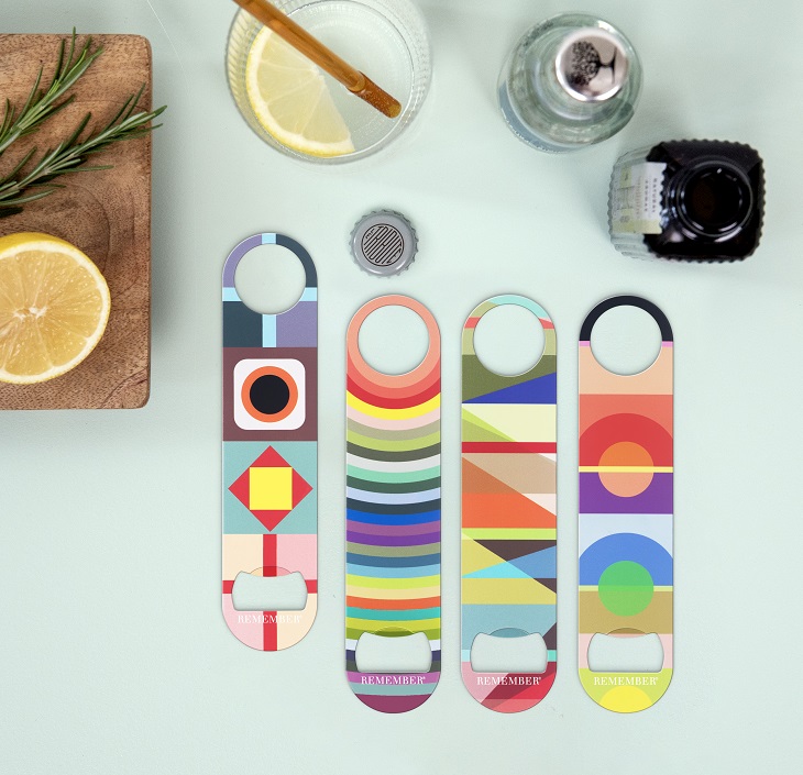 Die Remember Flaschenöffner sind ein bunter Hingucker auf dem Tisch.