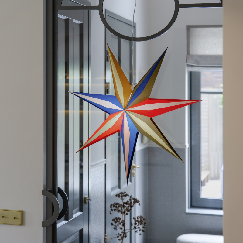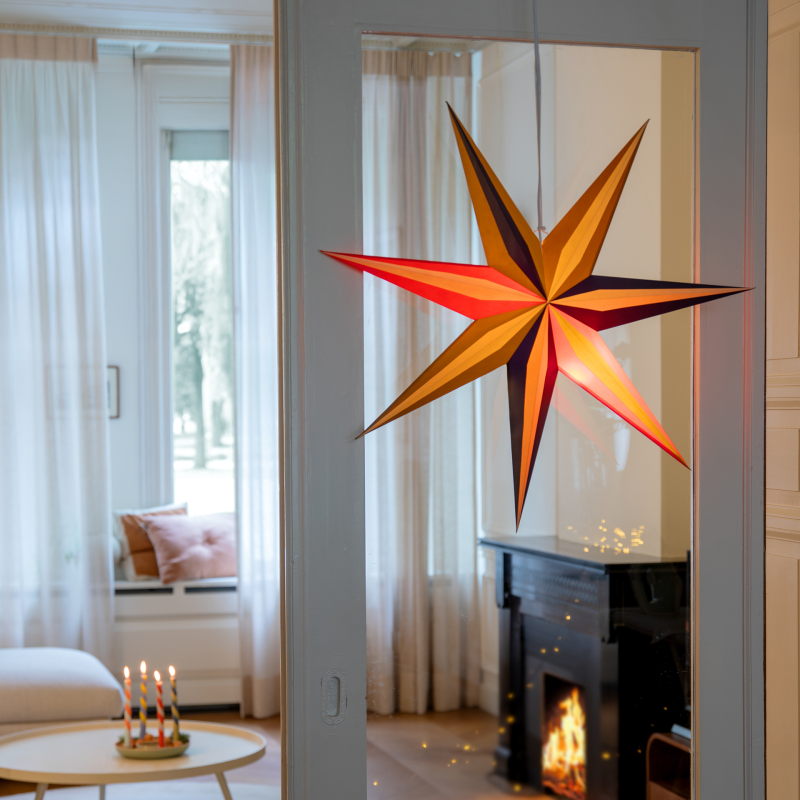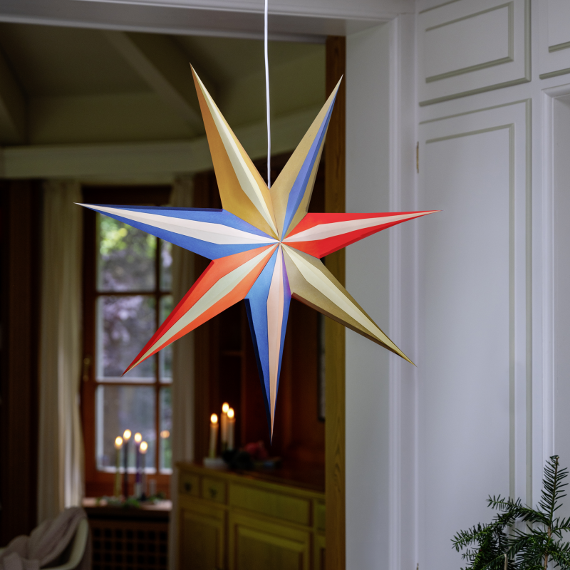 Weihnachtsstern im Remember-Style - das ist der schöne Papierstern Mago. Das Design ist farbenfroh, aber nicht auf Weihnachten beschränkt.