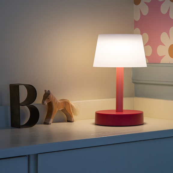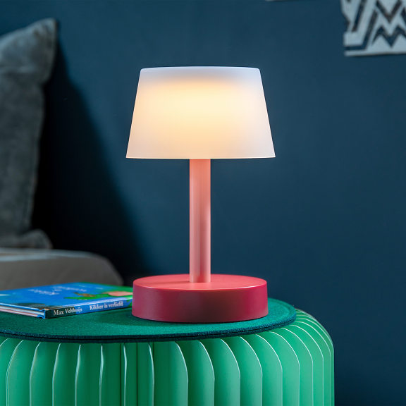 Der kleine Fritz setzt mit seiner kompakten Form ein klares Statement auf dem Regal oder dem Terrassentisch. Fritz kann am USB-C-Port aufgeladen werden und spendet bei vollem Akku bis zu 100 Stunden Licht – ganz ohne Kabel. Per Touch-Sensor auf dem Lampenschirm lässt sich die kleine Leuchte stufenlos dimmen, außerdem ist Fritz spritzwassergeschützt und kann deshalb auch problemlos im Badezimmer oder im Außenbereich zum Einsatz kommen.