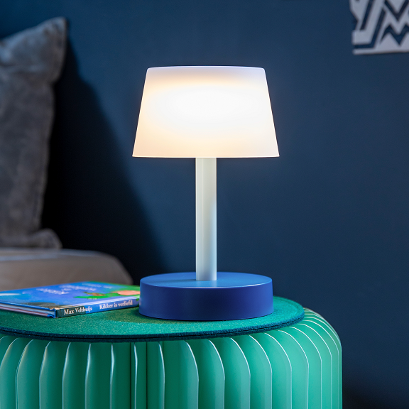 Remember Tischleuchte Fritz Sky Akku Lampe mit blauem Fuß