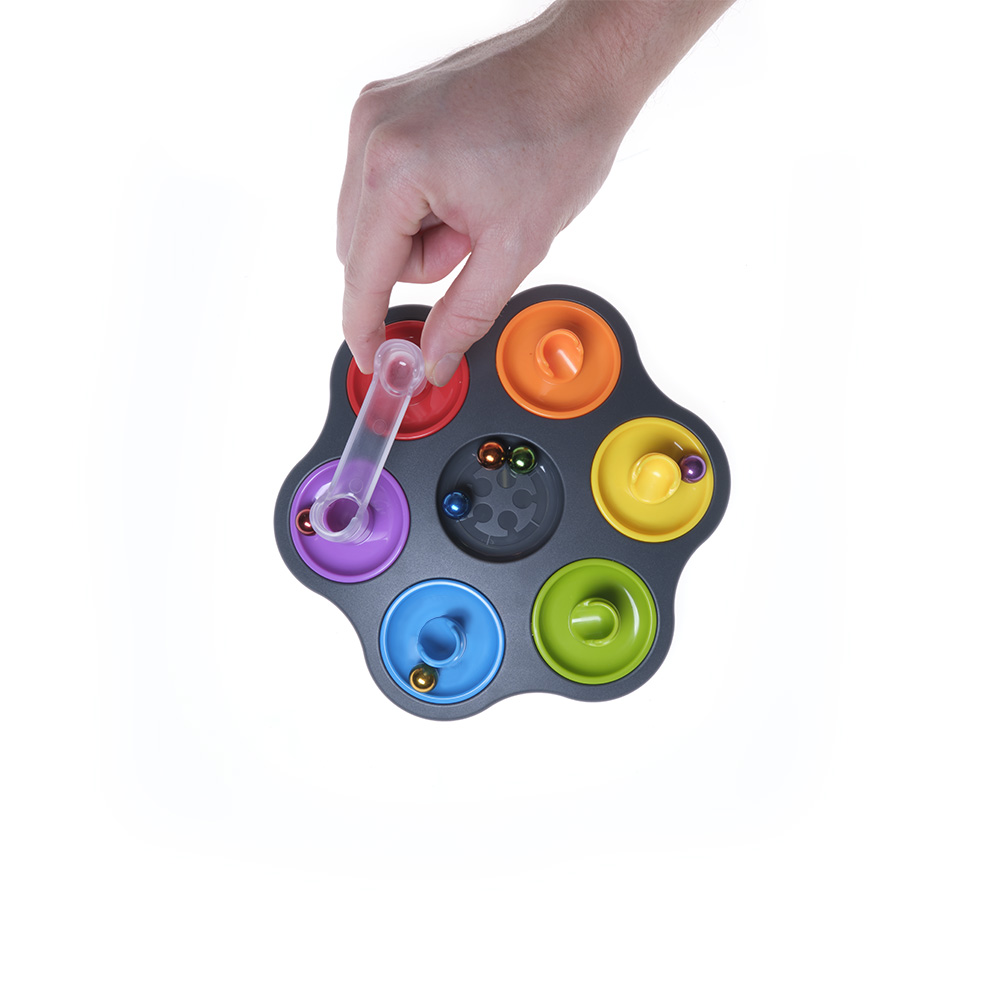 Kreative Technik, logisches Denken und räumliches Vorstellungsvermögen – löse alle Herausforderungen und bilde Kugelbahnen, sodass am Ende jede Kugel in der geforderten Basis landet - auf geht´s!