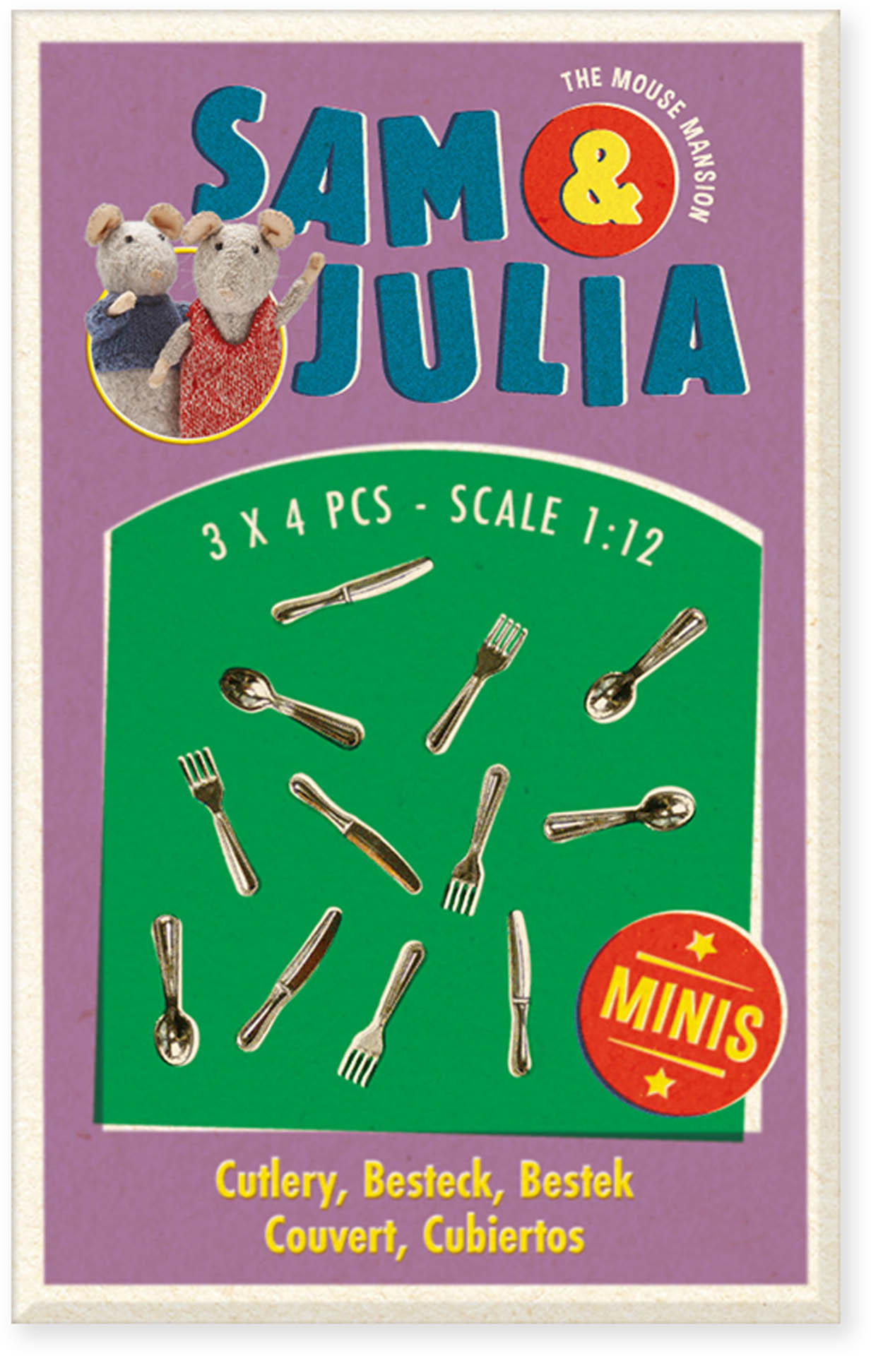 Mit dem Sam und Julia Zubehör Minis kommt echtes Leben in Sam und Julia´s Puppenhaus! Hier kommt zum Beispiel das Besteck für die Küche! Süß!
