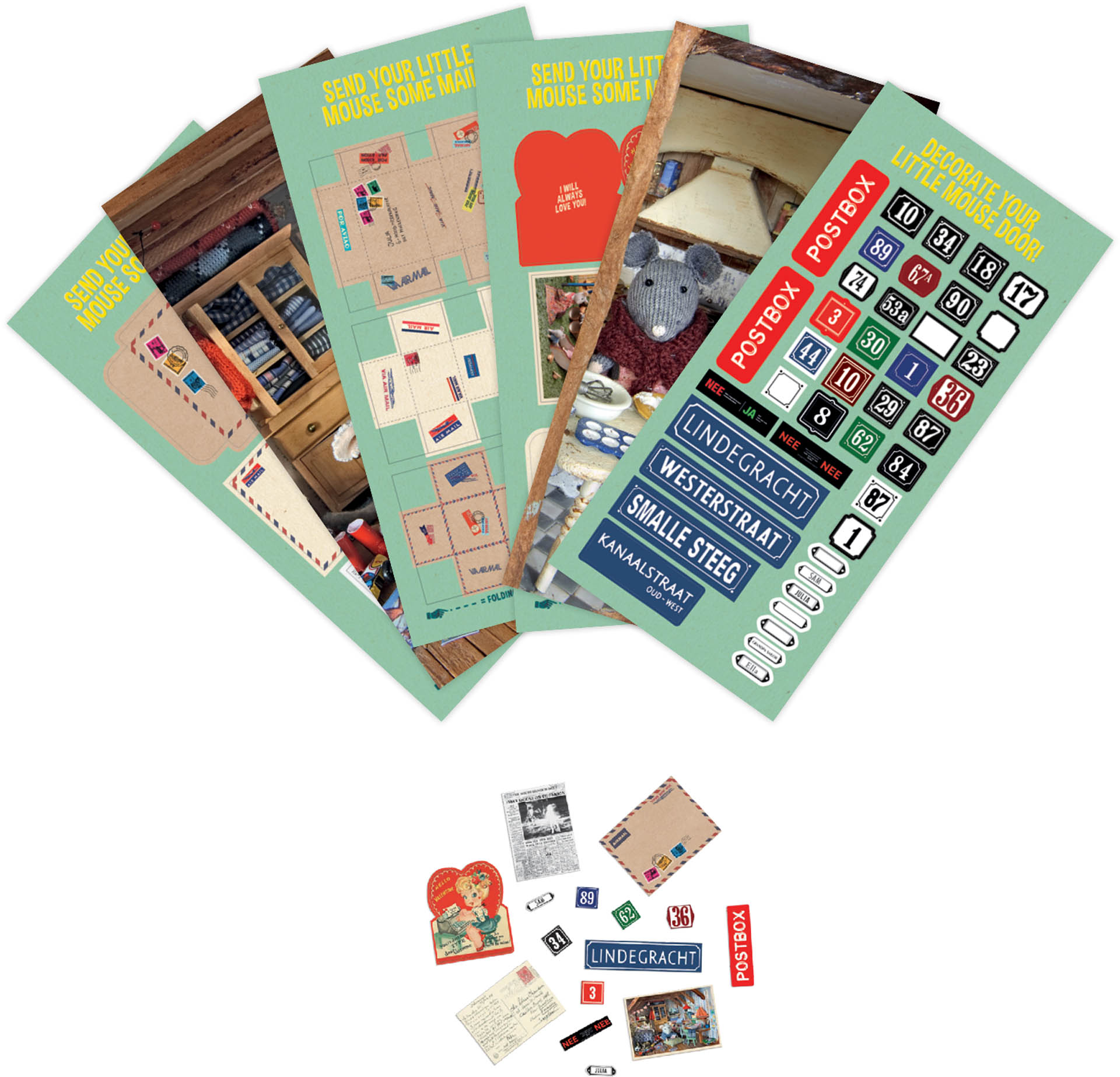 Das Mäusehaus braucht eine Mäusetür? - Hier! Dazu ein süßer Briefkasten und eine kleine Leiter. Und viele Aufkleber-Schilder und kleine Briefe. Ganz persönlich!