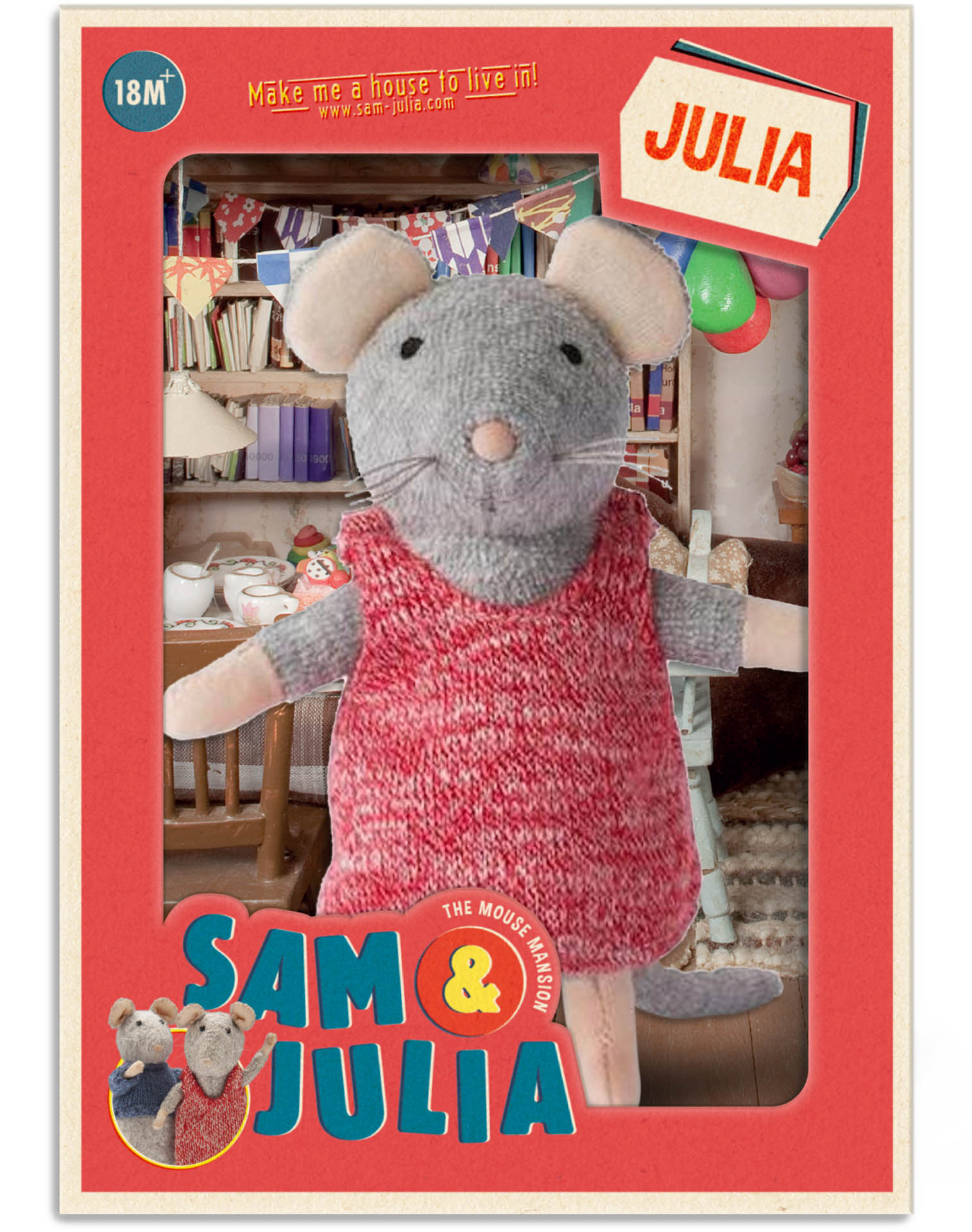 Sam und Julia ist eine bunte Mäuse-Puppen-Welt mit süßen Plüsch-Mäusen und Puppenhäusern zum Selbst-Zusammenbauen. Viele verschiedene Zimmer können zusammengebaut und dann zu einem großen DIY-Puppenhaus kombiniert werden. Diese Miniatur-Mäuse-Welt von Autorin und Illustratorin Karina Schaapman begeistert jung und alt. Auch bekannt aus der TV-Serie.