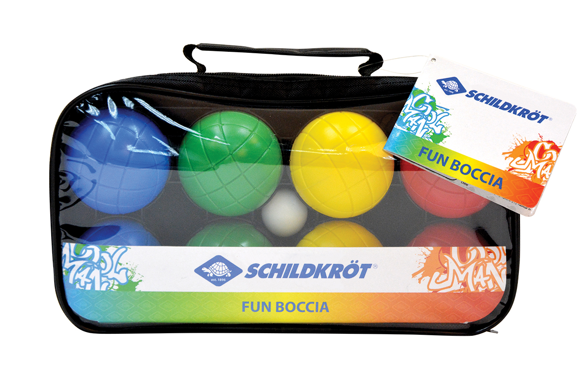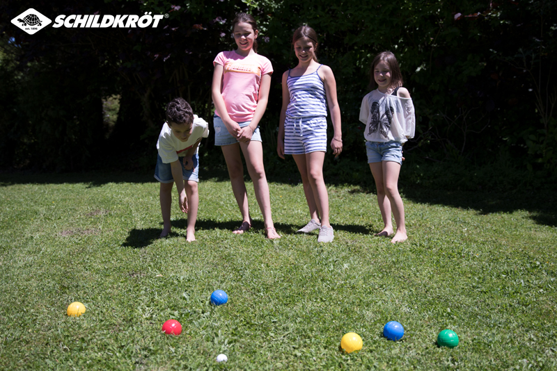 Boulekugeln aus Metall sind doch recht schwer und hart, deswegen wird Familien oder Gruppen mit kleineren Kindern gern zum leichteren Boccia-Set gegriffen.