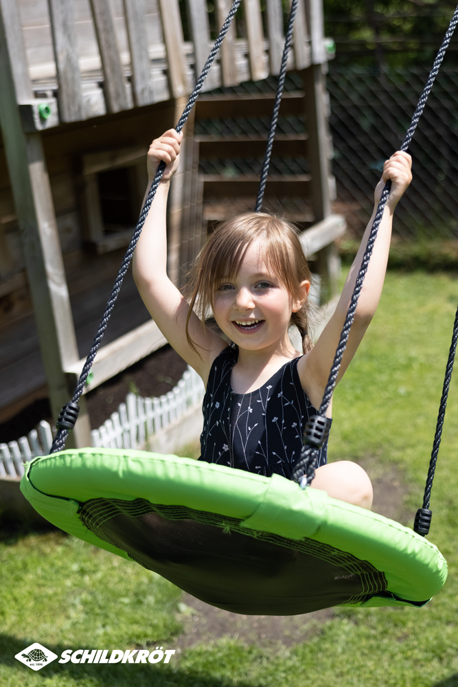 Nestschaukeln sind einfach toll, sie haben mehr Sitzfläche als die klassischen Schaukelbretter. So kann sich das Kind super hineinsetzen oder auch z.B. bäuchlings hineinlegen - ein großer Spaß. Diese Variante von Schildkröt ist mit 60cm Durchmesser ein bisschen kleiner. Sie ist für drinnen und draußen geeignet.
