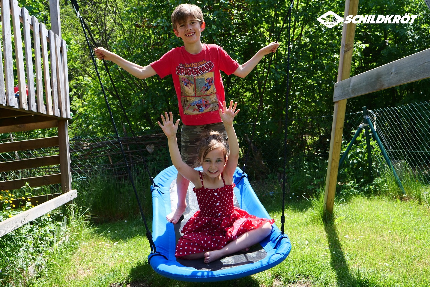 Auf der ovalen Nestschaukel von Schildkröt habt ihr richtig Platz! Natürlich zum Schaukeln, aber auch zum Sitzen und in der Sonne liegen - also mal richtig abhängen ;-)