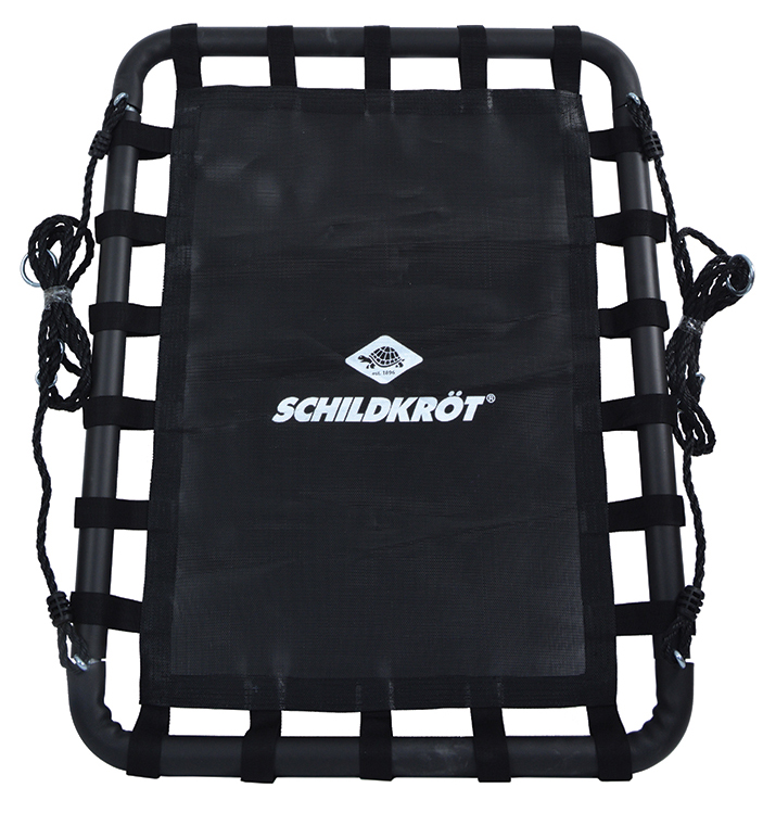 Die vier Stahlrohre der Schaukelfläche (Ø 32mm) haben einen Schaumstoff-Aufprallschutz und werden durch Augenschrauben miteinander verbunden. Die robuste Sitzfläche wird mit 38mm breiten Gurtbändern auf die formstabile Rahmenkonstruktion gefädelt. Die PE-Seile (Ø 10mm) sind über zwei Stellachten bis 160cm höhenverstellbar und werden an den Halteringen befestigt. Die Schaukel wird teilzerlegt, inkl. Montageanleitung und Werkzeug geliefert.