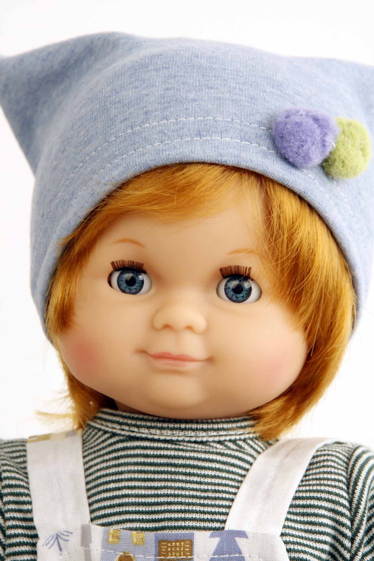 Babypuppe Schlummerle ist ein Schildkröt-Klassiker. Es gibt die eher kleine süße Babypuppe in Varianten mit und ohne Haare (hier mit). Der Körper ist weich. Arme, Beine und Kopf sind aus Vinyl.