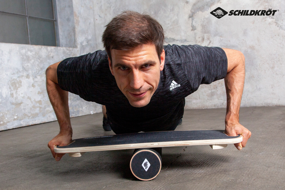 Schildkröt hat dieses Balance Board allerdings auch als Fitnessgerät produziert. Die Brettform wurde in Anlehnung an das klassische Surf-, Snow- und Skateboard konzipiert. Während des Gleichgewichtstrainings bietet die rutschhemmende Oberfläche einen sicheren Halt. Ein dauerhaftes Training stärkt die Rumpfmuskulatur und verbessert die Körperhaltung. Auch Liegestütze, Dips und andere Übungen bekommen mit dem Balance Board einen neuen Kick.