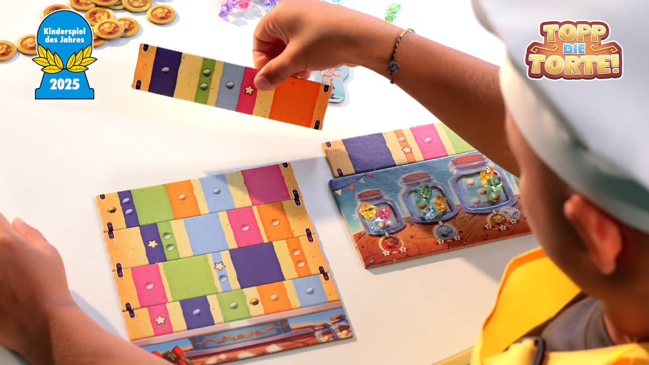 Nach sieben Runden ist das Spiel vorbei und erspielte Siegsterne und goldene Zuckerwürfel lassen die Wertungsrunde zum spannenden Torte-an-Torte-Rennen werden. Wer toppt mit seiner Torte die anderen?