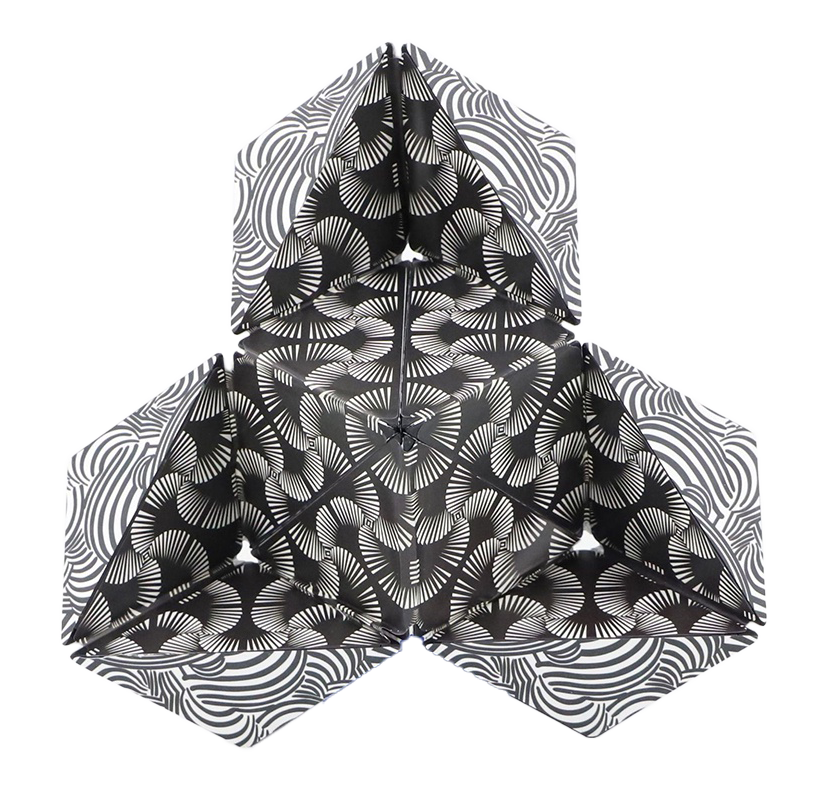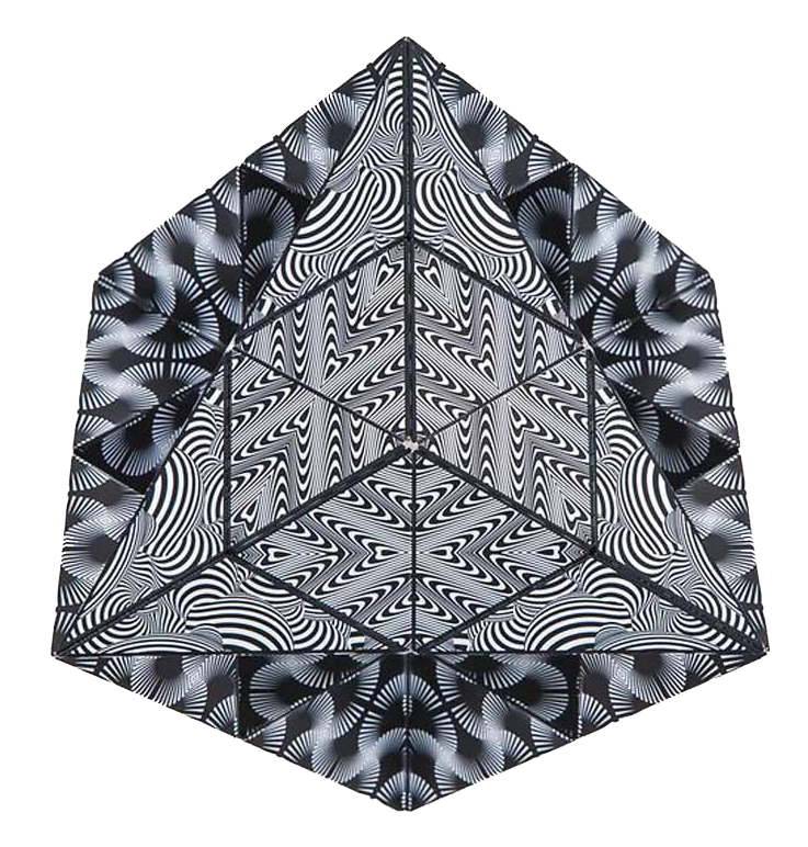 Er ist an 2 Ecken zu öffnen, aus Pyramiden zusammengesetzt, mit Gelenken verbunden und mit 36 versteckten Magneten stabilisiert.