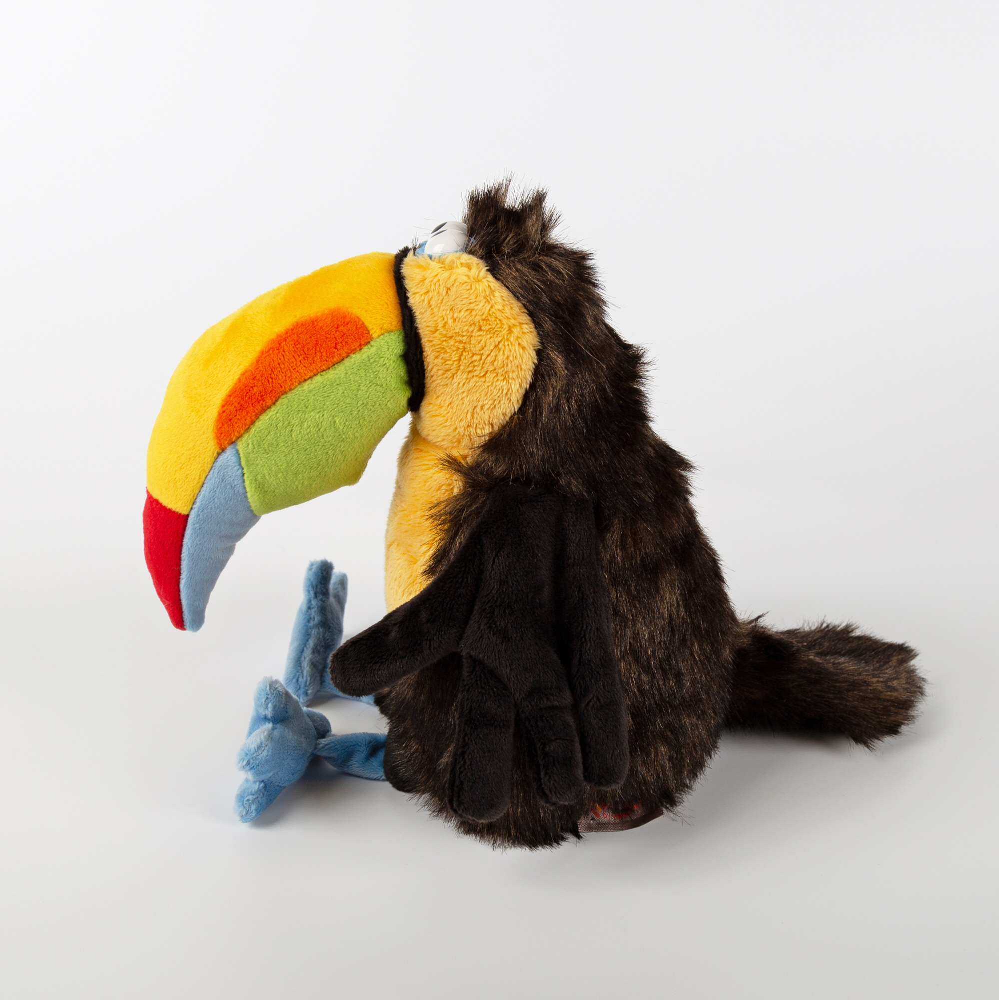Stofftier Chakka Tukan von den Sigikid Beasts ist mit seinem riesigen Schnabel ein echt bunter Kuschelvogel. Die himmelblauen Füße sind ein lustiges Extra.
