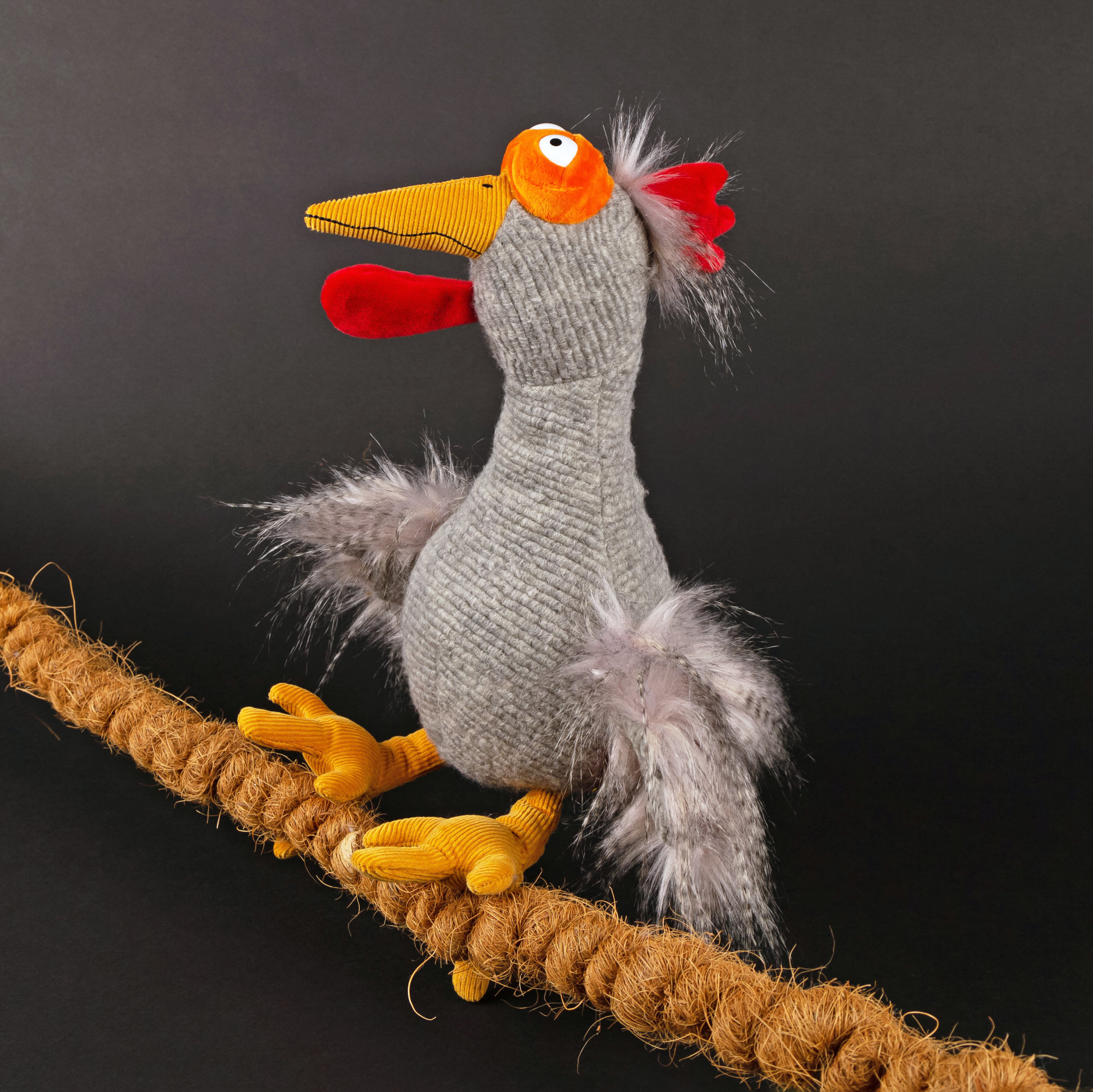 Stofftier Chilling Chicken von den Sigikid Beasts mit grauem Gefieder und dehr speziellem Blick. Chilling Chicken hat seinen Spitznamen nicht umsonst, denn kein anderes Huhn bleibt so entspannt, wenn auf dem Hühnerhof mal wieder Zickenalarm herrscht.