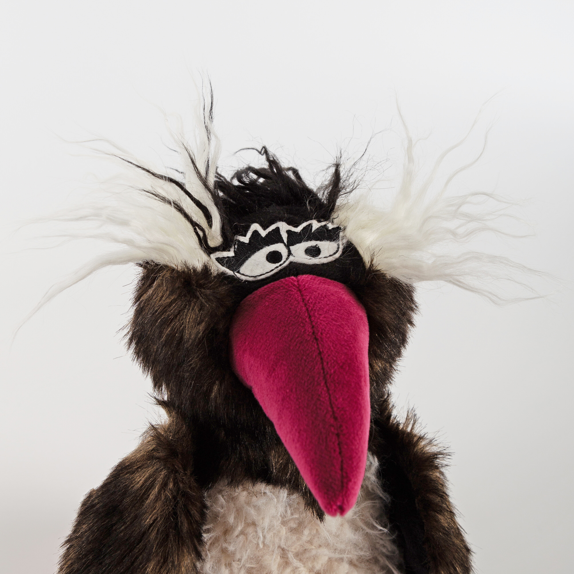Stofftier Rock Hopper von den Sigikid Beasts ist ein Pinguin mit tollen Federplüschpuscheln am Kopf - wohl ein Schopfpinguin. Roter Schnabel und rote Füße vervollständigen den coolen rockigen Look.