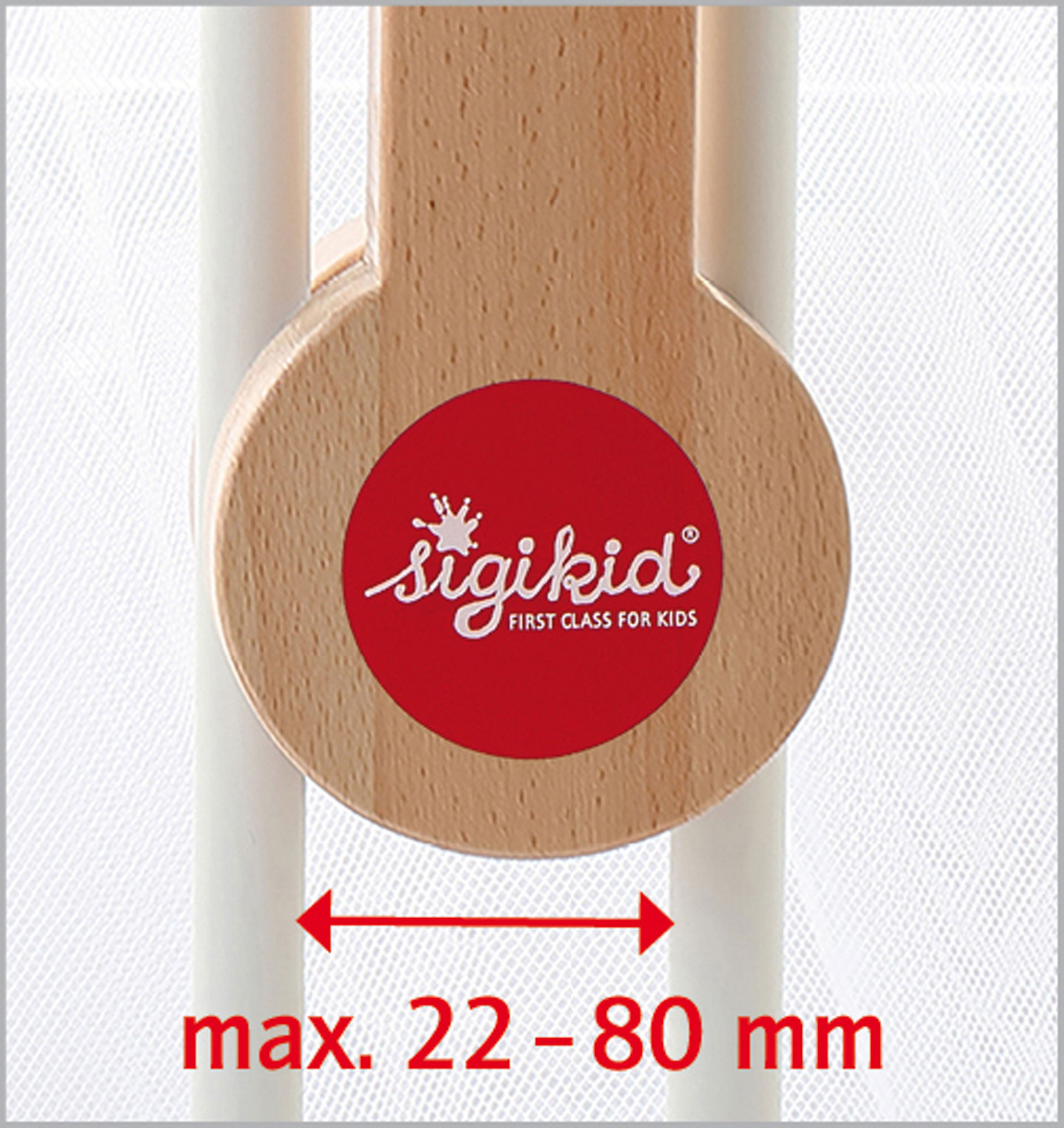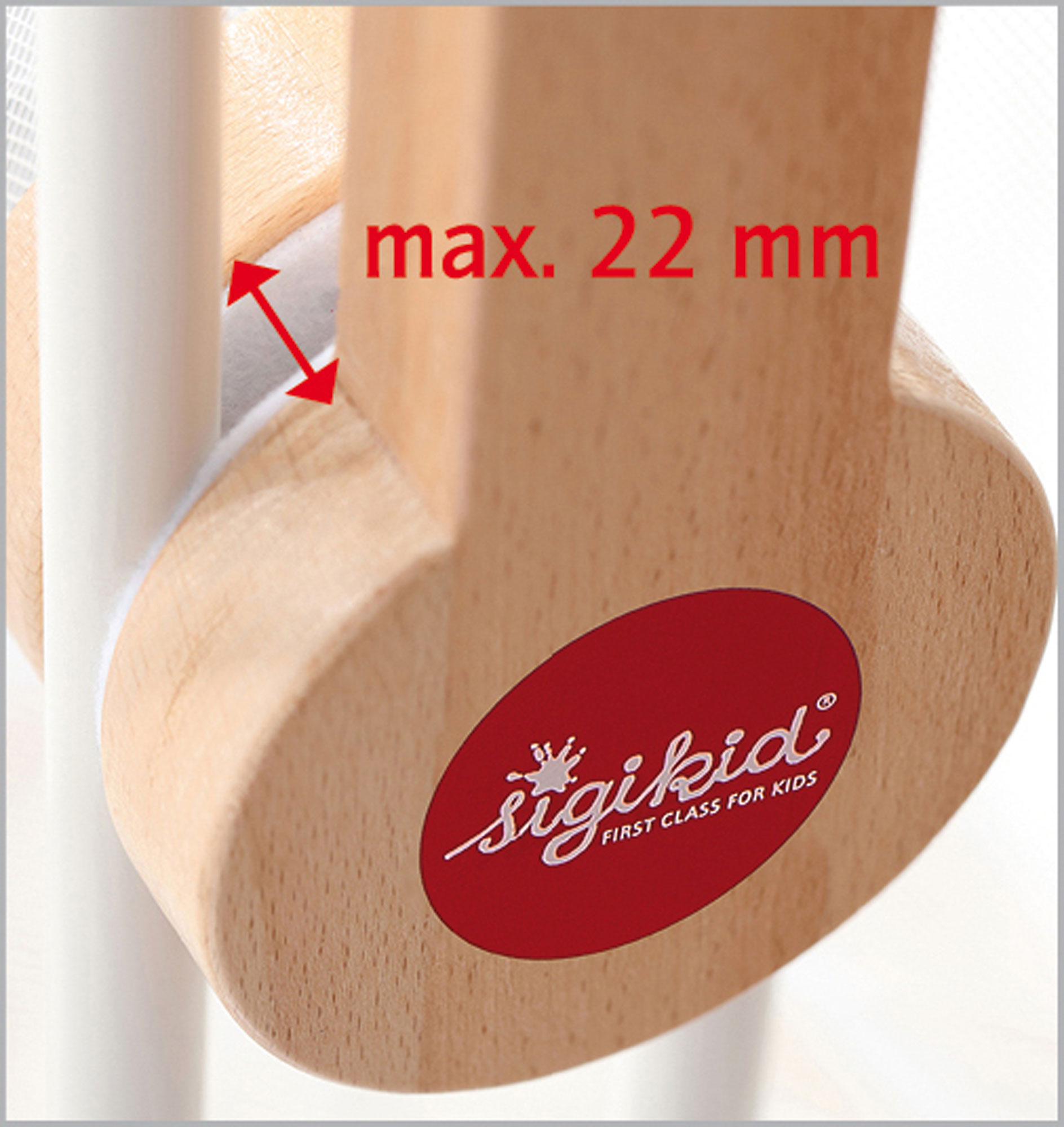 • geeignet für Bettstab-Abstand von 22 bis 80 mm, Durchmesser max. 22 mm.