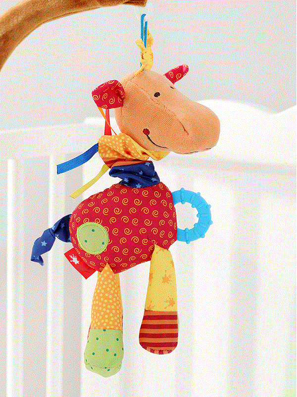 Die kunterbunte Aktiv-Giraffe von Sigikid ist kuschelig weich und mit super tollen Spiel- und Entdeckungsmöglichkeiten ausgestattet. Die Giraffe ist ein richtiger Blickfang, reich geschmückt mit zahlreichen Muster- und Materialmixen. Diese bieten eine Menge Greifmöglichkeiten Ein genoppter Ring bietet eine super Biss-Fläche für erste Zähnchen. Weitere tolle Effekte bieten ein Fühlstein im Fuß, die Vibrationsrassel, Quietsche und Knisterfolie. Das animiert das Kind zum Ziehen, Schütteln und Knistern und verspricht tolle erste haptische Erfahrungen!