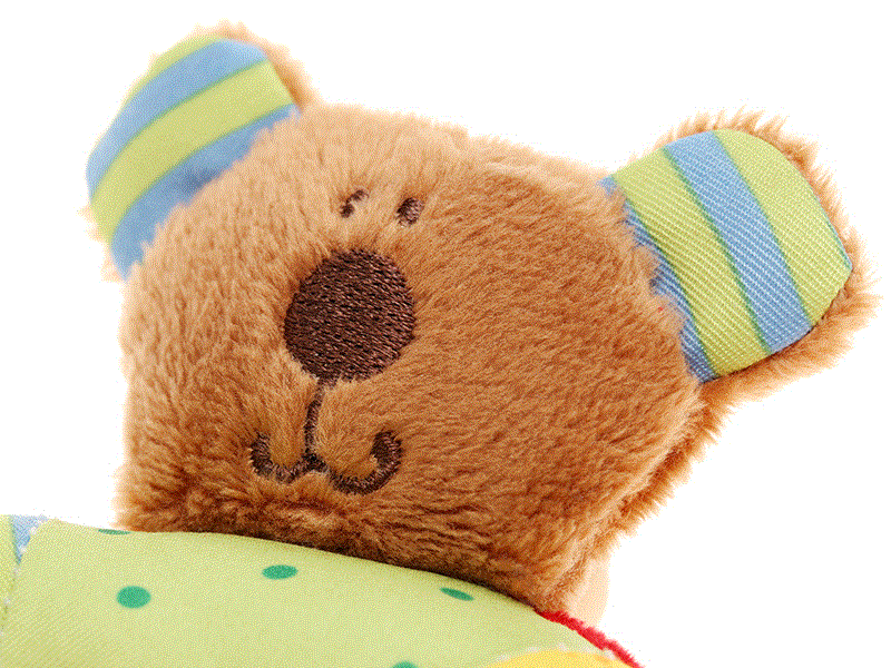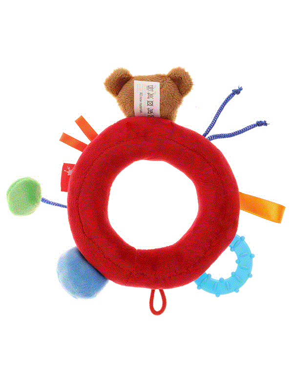 Der multifunktionale kunterbunte Ring mit dem süßen Bärenkopf ist mit super tollen Spiel- und Entdeckungsmöglichkeiten ausgestattet. Der Ring ist ein richtiger Blickfang, reich geschmückt mit zahlreichen Muster- und Materialmixen. Rassel, Knisterfolie oder Beißring, der Aktiv-Ring ist perfekt für die verschiedenen Aktiv-Phasen ihres Babys.