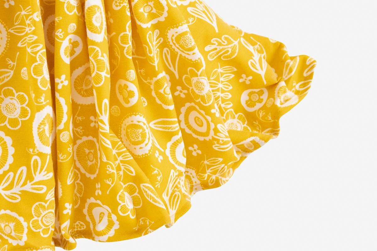 Little Girls Tischlampe Sumia ist eine Flower Lamp in fröhlichem Gelb, die gleich sonnige Stimmung in deine Wohnung bringt. Flower Lamp heißen bei Skitso die Lampen deren Schirme Blütenblättern nachempfunden sind. Die Blumen bzw. Blüten finden sich aber auch im Kleid von Sumia wieder, das einen wunderbaren Print in Weiß und Gelb aufweist.