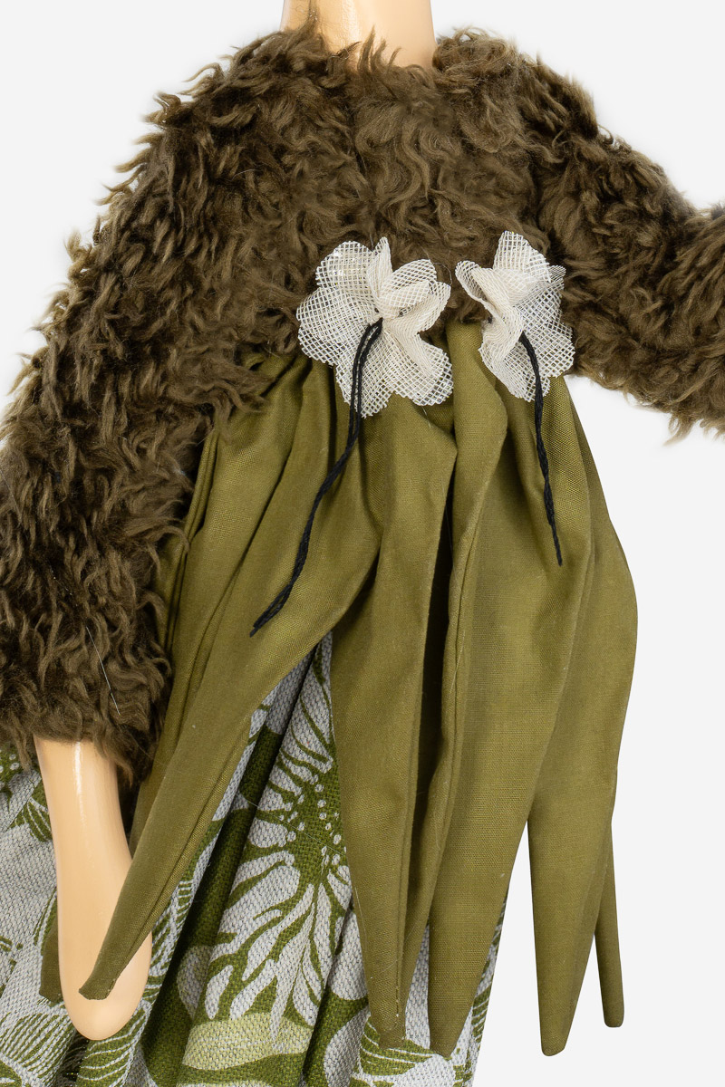 Der hochwertige Lampenkörper wird in Handarbeit von einer griechischen Manufaktur hergestellt. Auch die Farben werden von Hand aufgetragen. Die Figur besteht aus Massivholz und steht auf einer Holzplatte, die mit Papier beklebt ist. Die Kleidung besteht aus versteiften Textilien. In der unteren Saumkante ist ein Draht eingearbeitet, mit dem Sie den Rock vorsichtig entfalten und den Windstoß sichtbar machen.