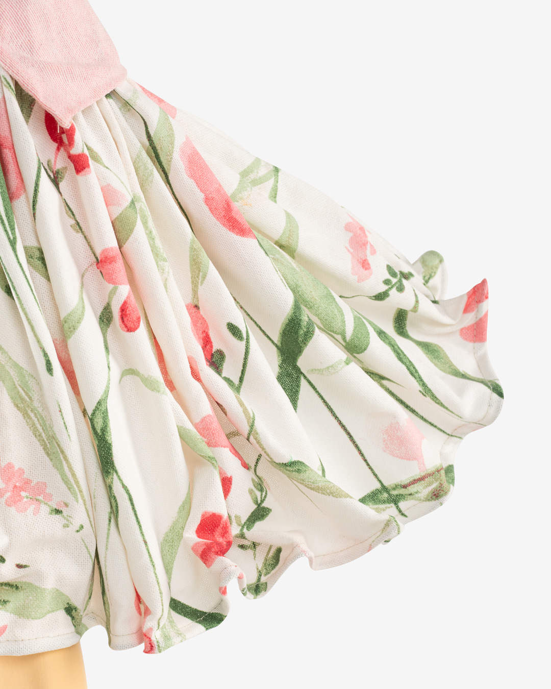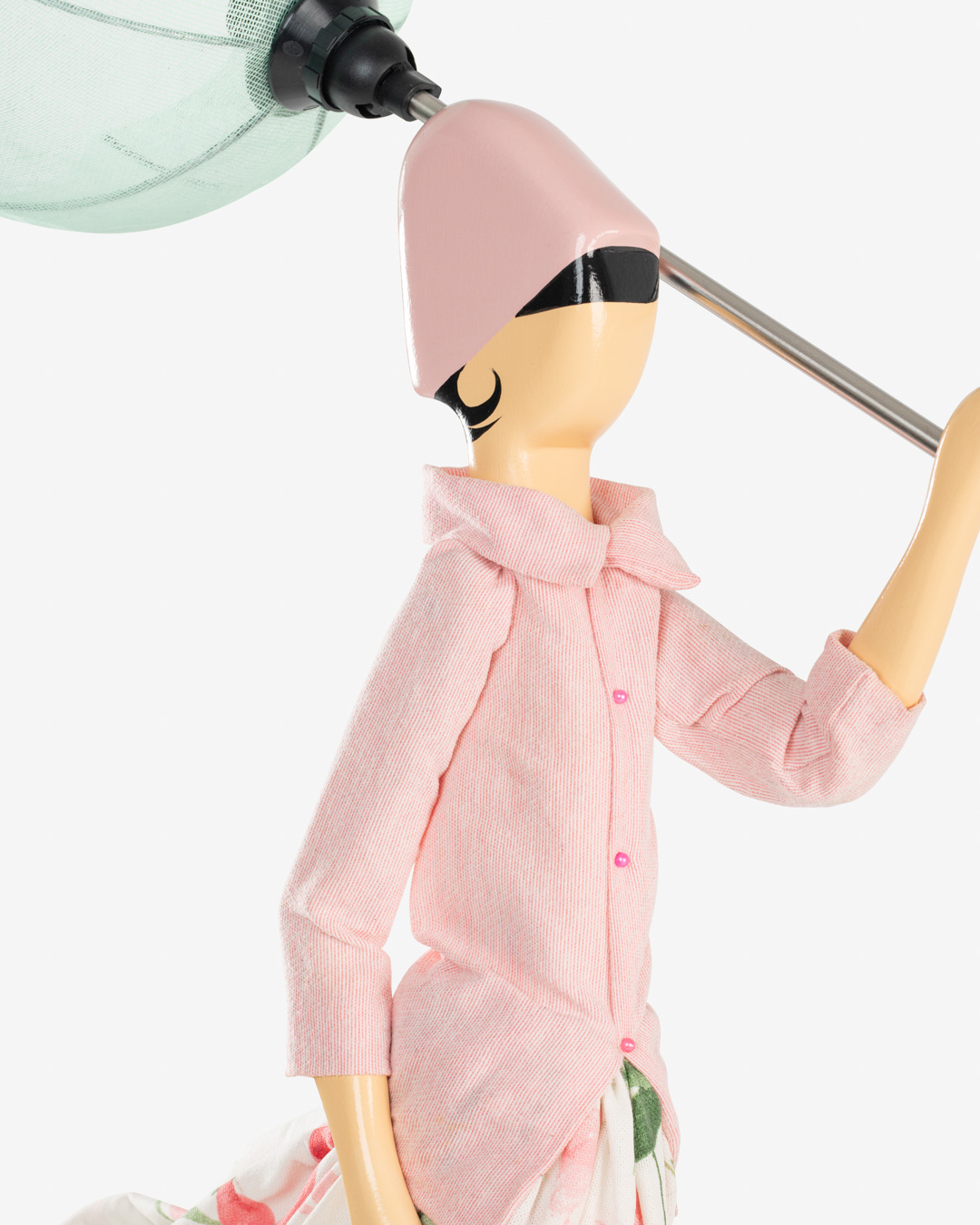 Girl Lamp Deppie von Skitso ist eine wunderbar frühlingshafte Tischlampe in Pastelltönen wie Rosé und Mint. Der Rock hat einen tollen Blumenprint.