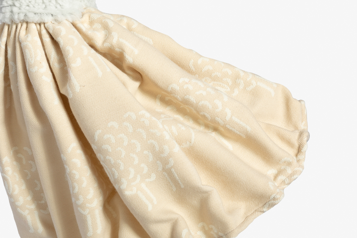 In der unteren Saumkante ist ein Draht eingearbeitet, mit dem Sie den Rock vorsichtig entfalten und den Windstoß sichtbar machen.