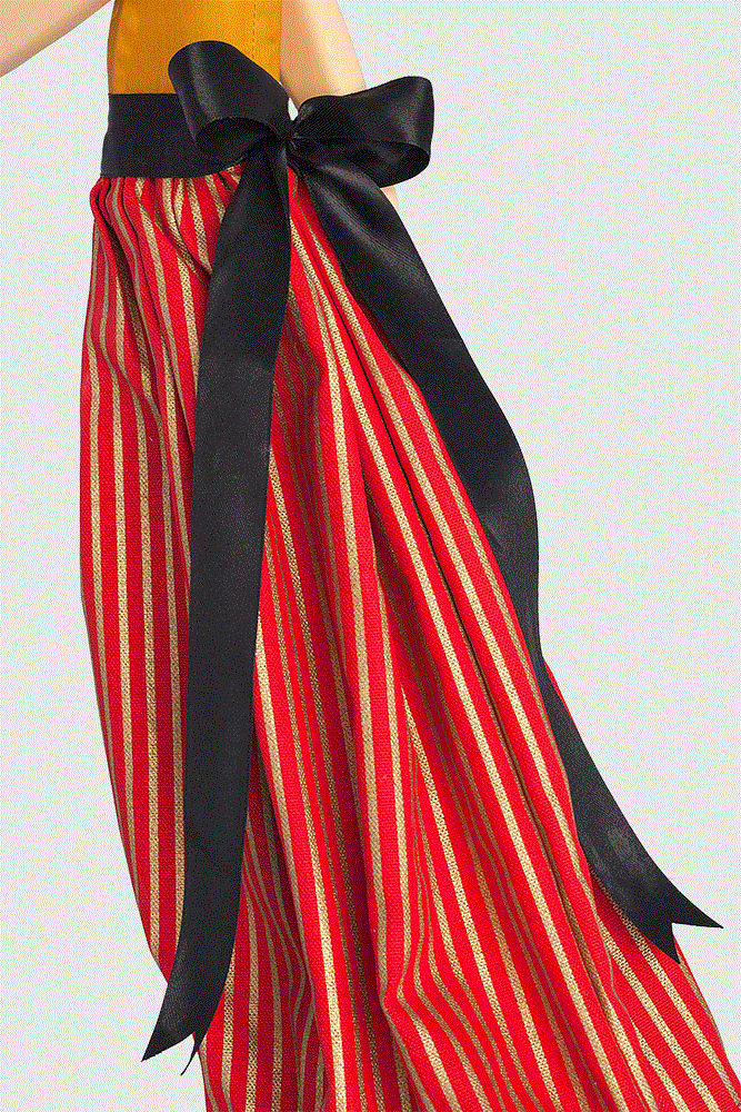 In der unteren Saumkante ist ein Draht eingearbeitet, mit dem Sie den Rock vorsichtig entfalten und den Windstoß sichtbar machen.