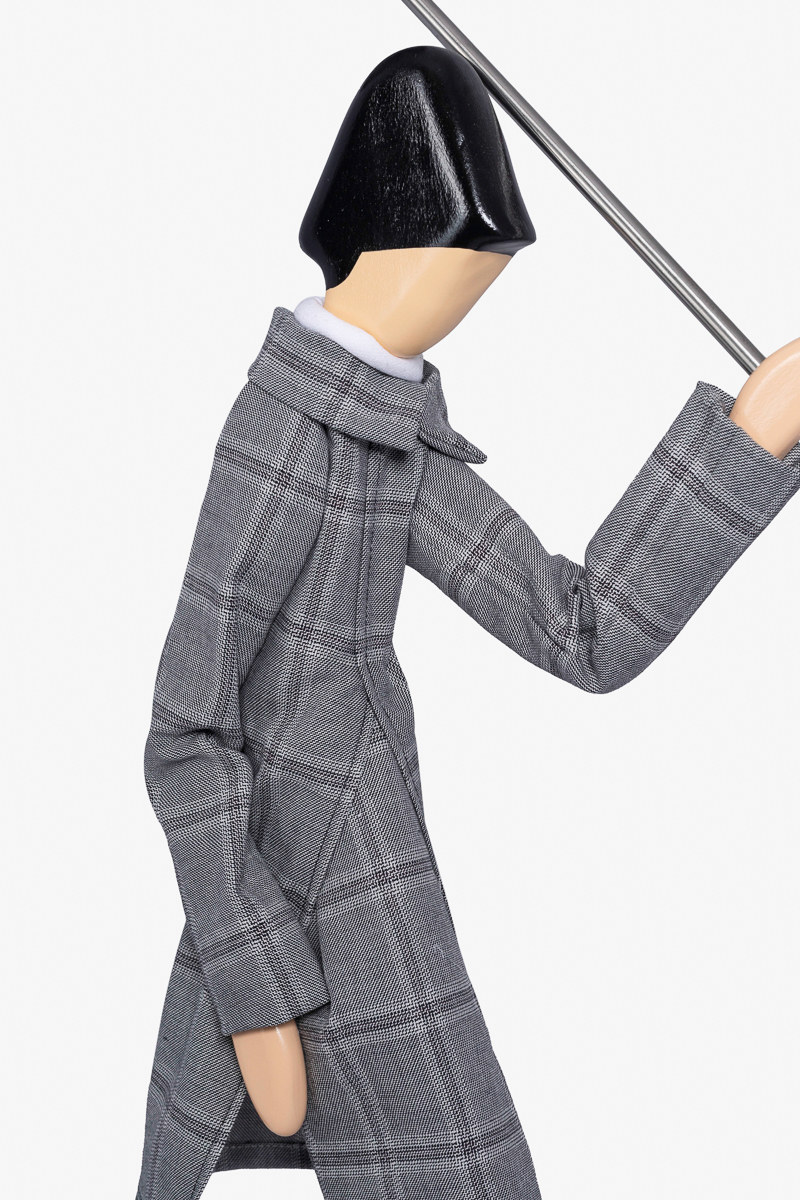 Diese Lampe von Skitso zeichnet sich durch das ungewöhnliche Design aus. Eine Frau mit Schirm und Rock wird vom Winde verweht.