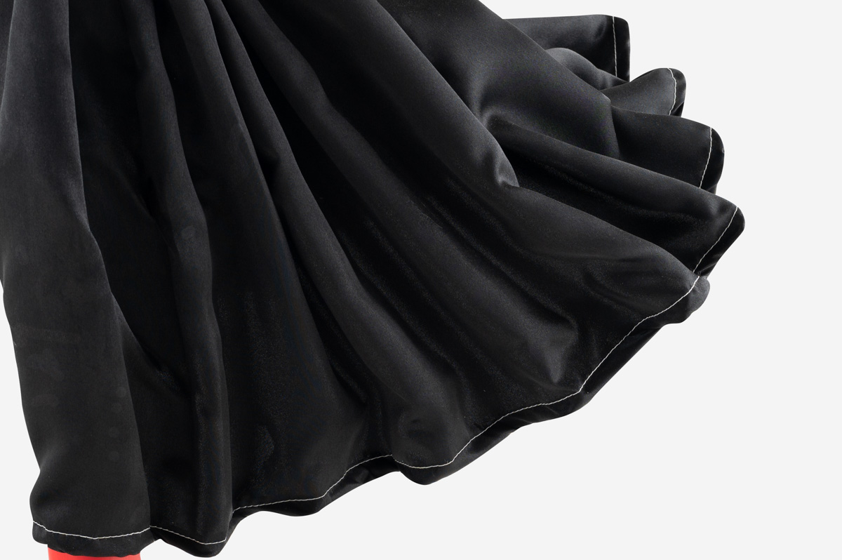 In der unteren Saumkante ist ein Draht eingearbeitet, mit dem Sie den Rock vorsichtig entfalten und den Windstoß sichtbar machen.