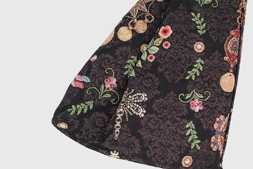 In der unteren Saumkante ist ein Draht eingearbeitet, mit dem Sie den Rock vorsichtig entfalten und den Windstoß sichtbar machen.