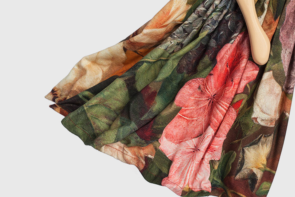 In der unteren Saumkante ist ein Draht eingearbeitet, mit dem Sie den Rock vorsichtig entfalten und den Windstoß sichtbar machen.