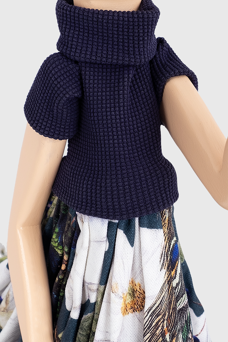 Der hochwertige Lampenkörper wird in Handarbeit hergestellt. Auch die Farben sind handbemalt. Die Figur besteht aus Massivholz und steht auf einer Holzplatte, die mit Papier beklebt ist. Die Kleidung besteht aus versteiften Textilien. Das Leuchtmittel wird im Schirm eingesetzt, der mit einer Metallstange mit der Figur verbunden ist.