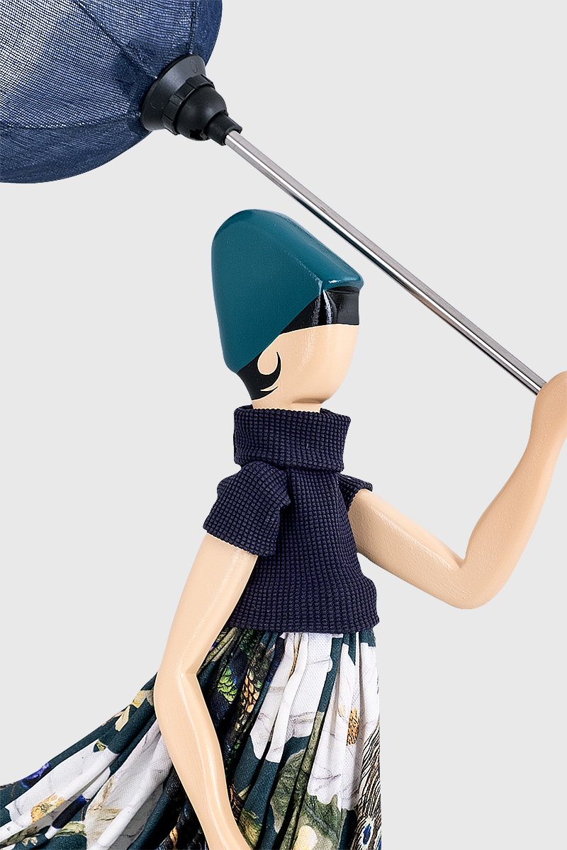 Diese Lampe von Skitso zeichnet sich durch das ungewöhnliche Design aus. Eine Frau mit Schirm und Rock wird vom Winde verweht.