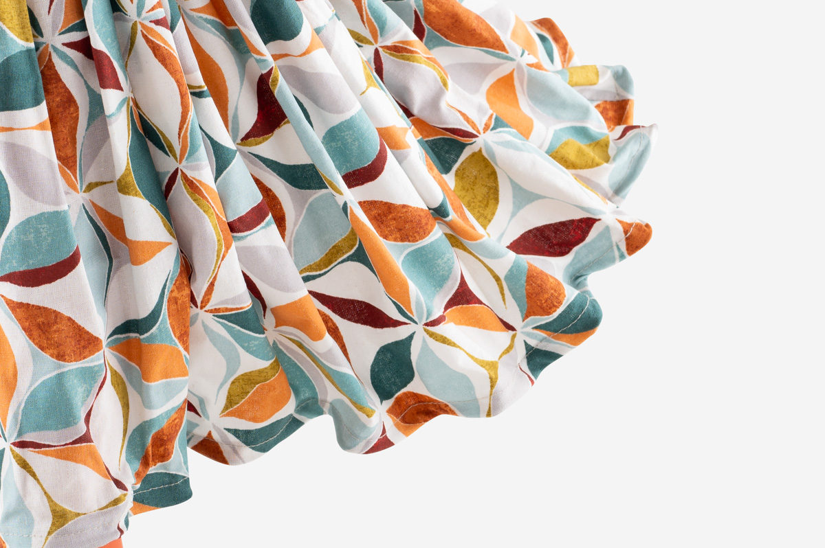 In der unteren Saumkante ist ein Draht eingearbeitet, mit dem Sie den Rock vorsichtig entfalten und den Windstoß sichtbar machen.