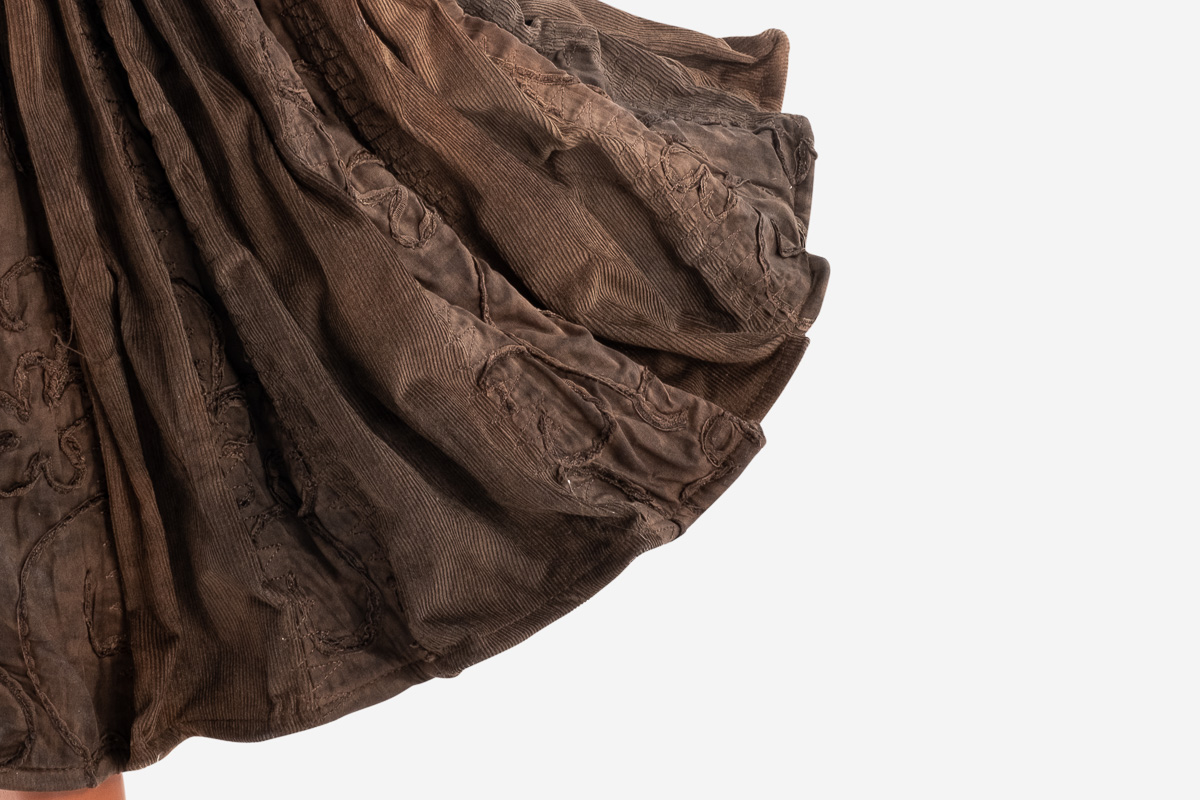 In der unteren Saumkante ist ein Draht eingearbeitet, mit dem Sie den Rock vorsichtig entfalten und den Windstoß sichtbar machen.