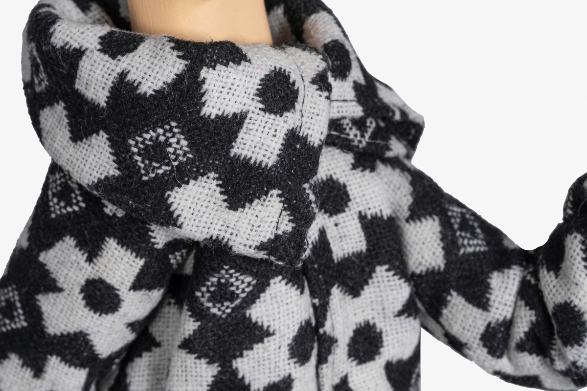 Skitso Little Girl Lamp Venus ist eine charmante und außergewöhnliche Tischlampe. Wie typisch für die Skitso Girl Lamps gibt es auch hier den verwehten Rock und den Regenschirm als Lampenschirm. Venus trägt schwarz-weiße Muster.