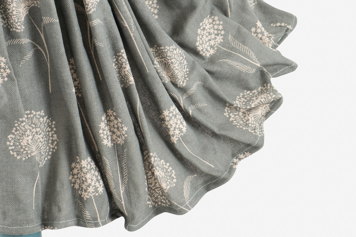 Skitso Little Girl Lamp Zenia - ein ganz besondere Lampe, ein echter Hingucker in deiner Wohnung! Wie typisch für die Skitso Girl Lamps gibt es auch hier den verwehten Rock und den Regenschirm als Lampenschirm. Zenia hebt sich allerdings noch einmal besonders ab mit ihrem extravaganten Oberteil - vielleicht habt ihr den passenden Flokatiteppich dazu? Auf den taubengrauen Rock sind weiße Doldenblüten gedruckt.