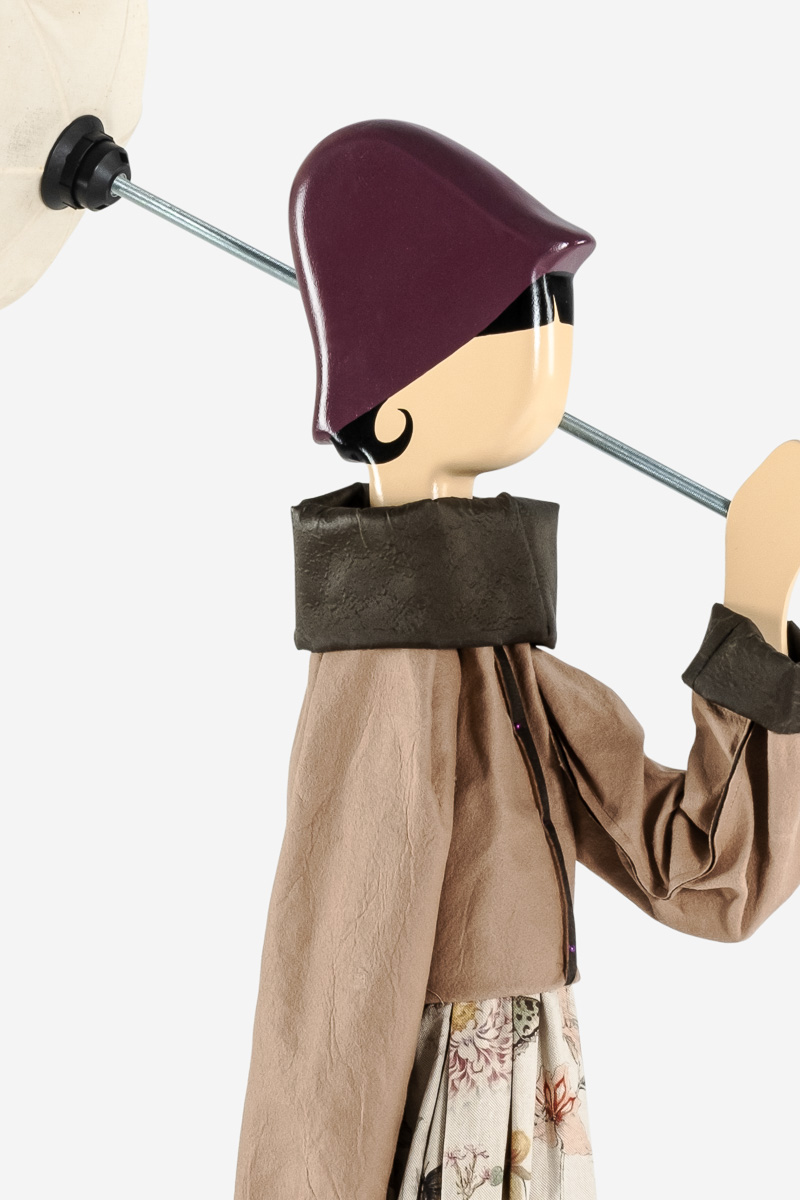 Die wunderbare Skitso Lampe Girl Lamp Debora: Die handgearbeiteten Lampen aus Griechenland sind einfach unwiderstehlich und originell. Die Frau mit dem windzerzausten Rock trägt den scheinbar im Sturm umgeschlagenen Regenschirm in ihrer Hand.